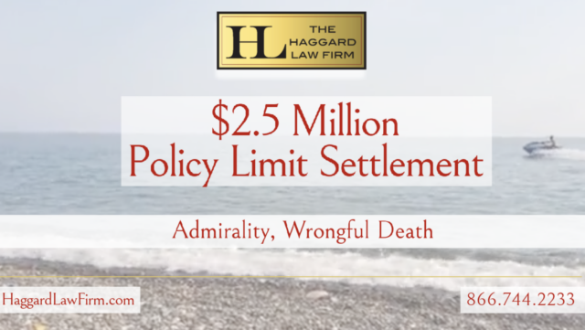 The Haggard Law Firm’s Pedro Echarte, along with co-counsel Joey Rafaeli, has secured a $2.5 Million policy limits settlement in a fatal boating collision case.